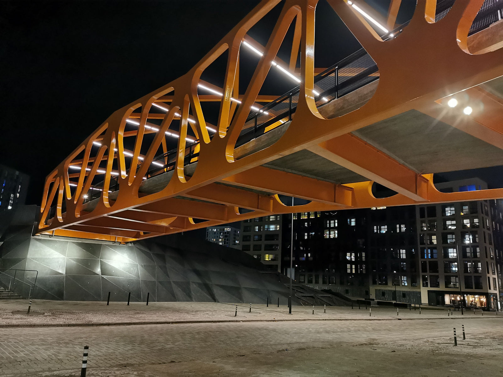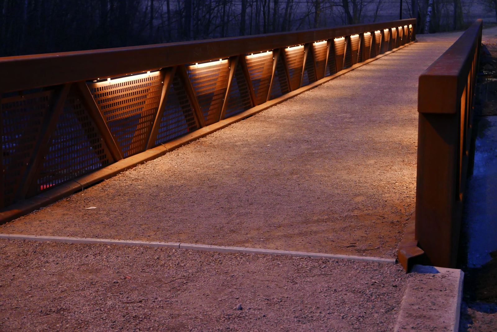 Misal RAIL lineaarivalaisimet molemmilla puolilla siltaa ja SPOT-NW sillan alla. Design A-insinöörit.